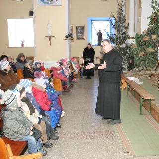 02b. Czarny Ostrów. Br. Jerzy Zadwórny SJ podczas katechezy dzieci.